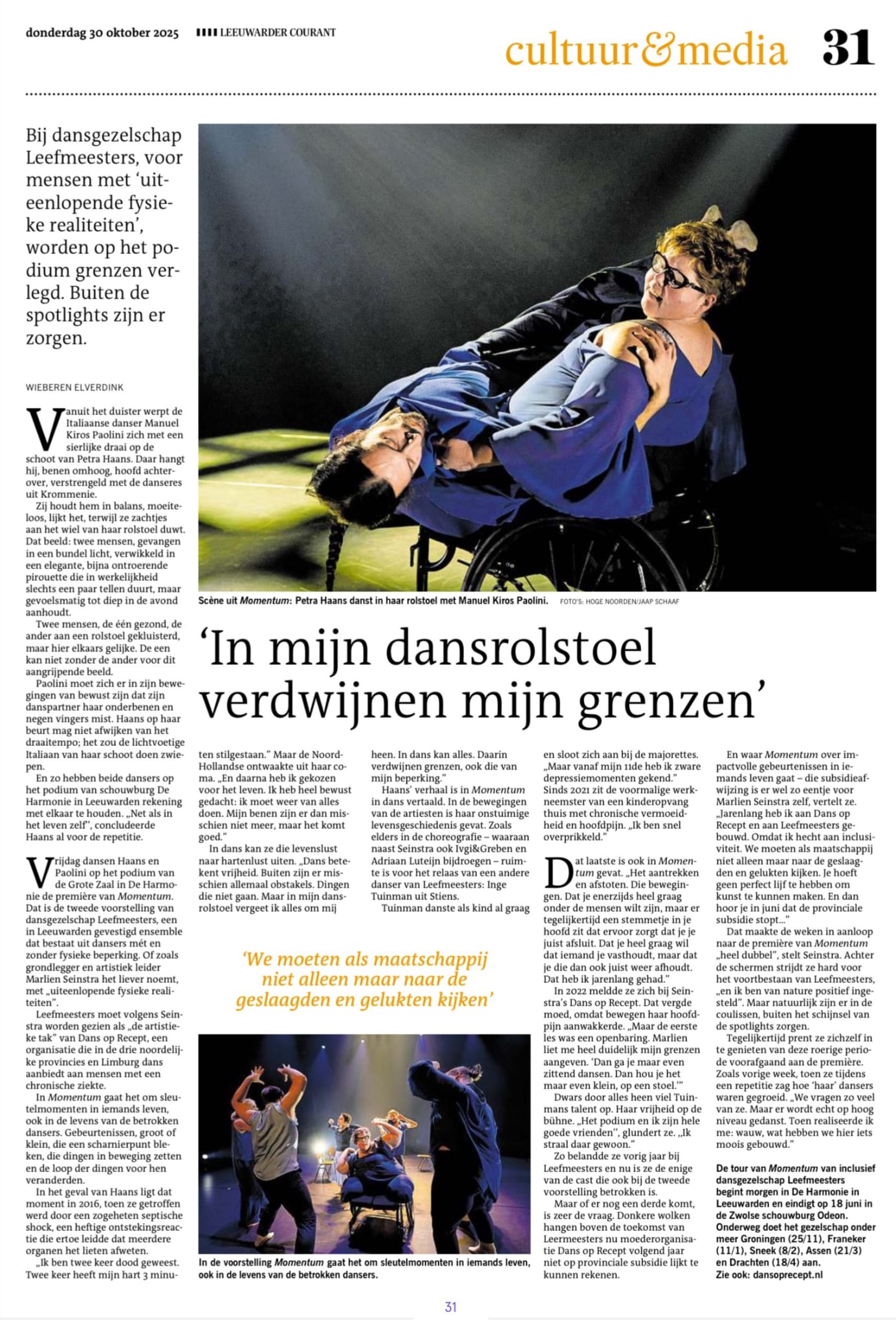 Leeuwarder Courant: 'In mijn dansrolstoel verdwijnen mijn grenzen'